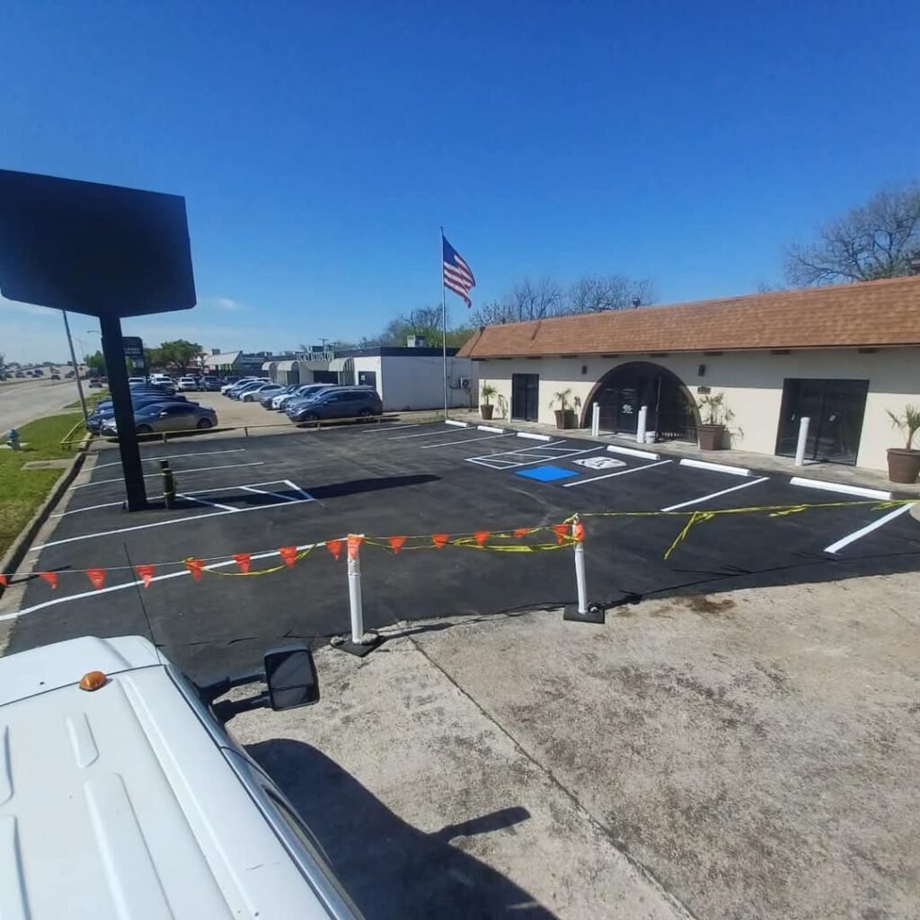 Sealcoating helps protect your asphalt from the wear and tear of weather, UV rays, and daily traffic. This service not only enhances the look of your pavement but also extends its lifespan by preventing cracks and damage.